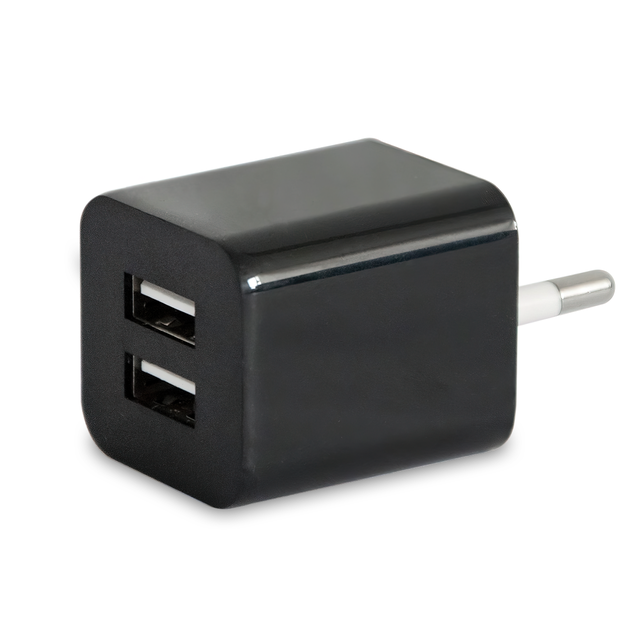 Адаптер питания CUBE Pro от сети 100-240 В, 2 USB, 1А/2.1A, черный, глянцевый