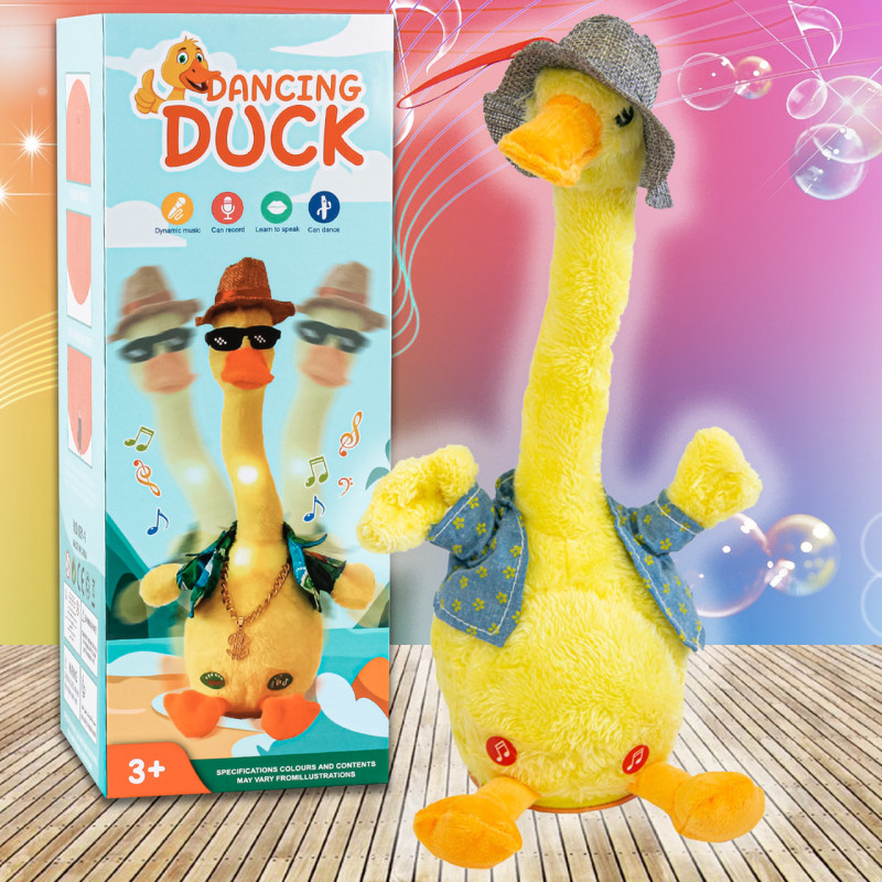 Интерактивная игрушка - танцующая утка в шляпке, поёт и светится Dancing duck
