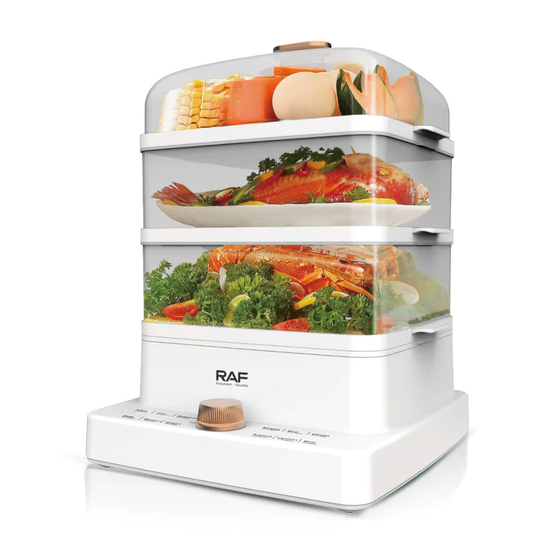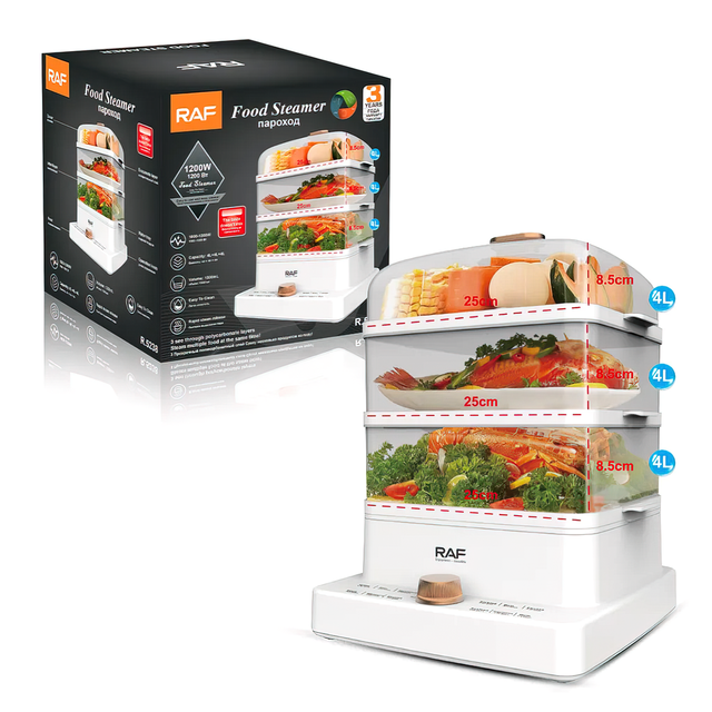 Пароварка электрическая RAF R.5238, 1200 Вт, 3-х уровневая, поддон на 4 л, для приготовления еды на пару