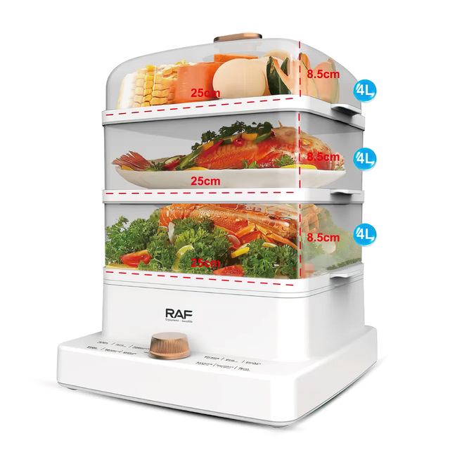 Представляем портативную электрическую пароварку RAF R.5238 - идеальный спутник для приготовления здоровой и вкусной пищи. С ее помощью вы сможете наслаждаться паровыми блюдами, заботясь о своем здоровье и питательности приготовленных продуктов. Пароварка оснащена тремя контейнерами для еды, каждый из которых вмещает до 4 литров, предоставляя вам достаточно места для разнообразных ингредиентов. Бело-прозрачный цвет и современный дизайн добавят шарма и стиля вашей кухне. С помощью этой электрической пароварки вы сможете легко приготовить свежие овощи, тофу, рыбу или мясо для полноценного обеда. Удобный переключатель позволяет выбрать нужный режим приготовления, а вы сможете насладиться разнообразием блюд и гарниров.