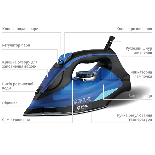 Паровой утюг BITEK BT-1321B – 3200 Вт, керамическая подошва, мощный пар