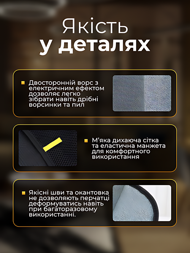Рукавичка для удаления шерсти — это простое, но гениальное решение для чистоты вашего дома, одежды и машины. Всего одно движение — и шерсть исчезает, будто её никогда не было! Без липких валиков, без батареек, без нервов.