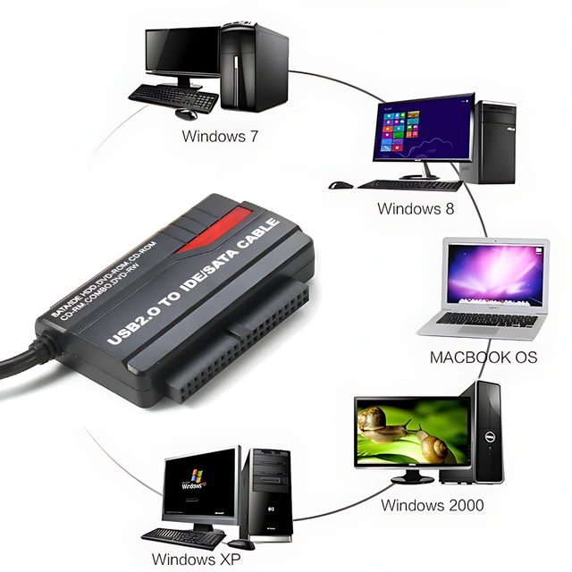 Этот компактный адаптер позволяет легко и быстро подключать жёсткие диски и оптические приводы (SATA и IDE 2.5"/3.5") к компьютеру через USB 2.0. Идеальное решение для восстановления данных, резервного копирования или диагностики без необходимости монтировать диски в системный блок.