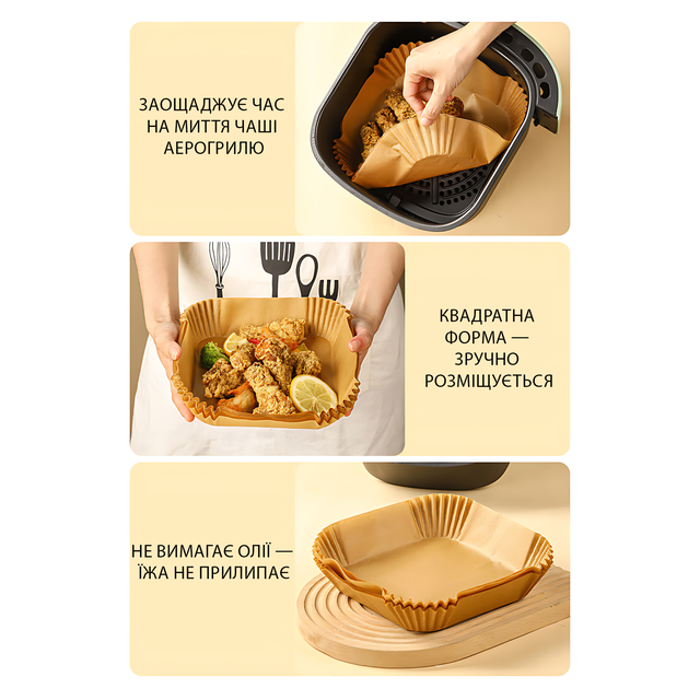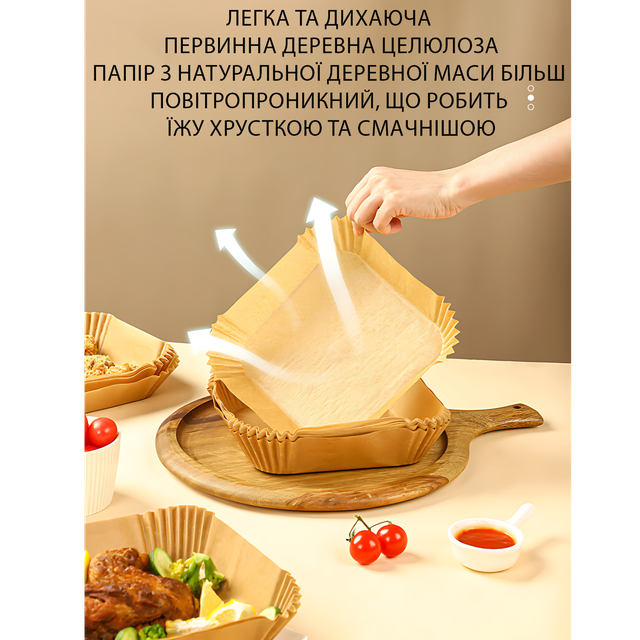 Пергаментные формы для аэрогриля и мультипечи SF1-2539, 50 шт, 20×16х4,5 см, квадратные, одноразовые, термостойкие, для выпечки и жарки без масла