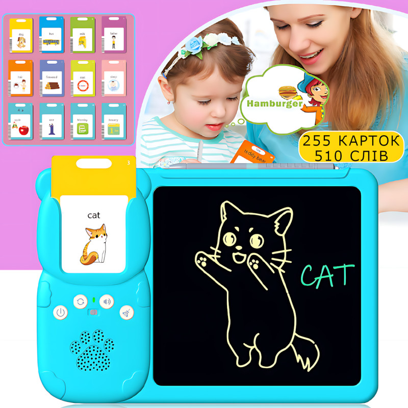 Планшет интерактивный ART-0279 для изучения английского языка с LCD доской для рисования 255 карточек 510 слов