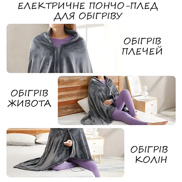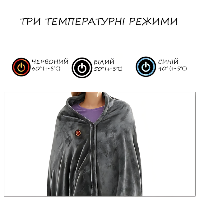 Плед с подогревом 45-55 градусов, согревающее электро одеяло пончо Electric Heating Shawl Blanket, порт USB
