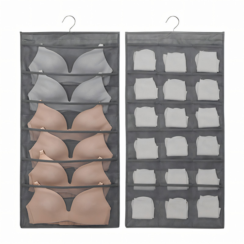 С нашим удобным двухсторонним органайзером для нижнего белья, хранение вашей коллекции стало легким и удобным. Теперь вы можете организовать и защитить свои нижнее белье и аксессуары без лишних усилий. Этот стильный органайзер не только предлагает элегантные решения для хранения, но и обеспечивает порядок и легкий доступ к вашим вещам.