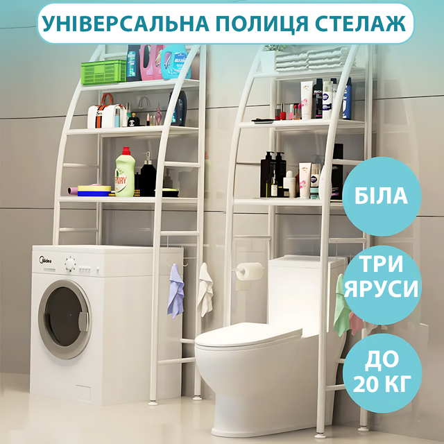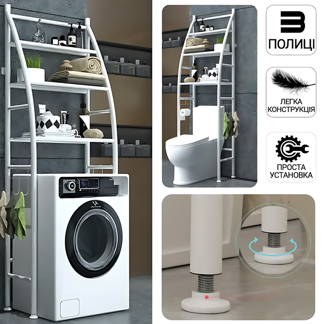 Полка-стеллаж напольная над стиральной машиной Laundry Rack 361 WO, 3 яруса, белая, 65×25×165 см, металл + пластик, до 20 кг, для ванной и прачечной