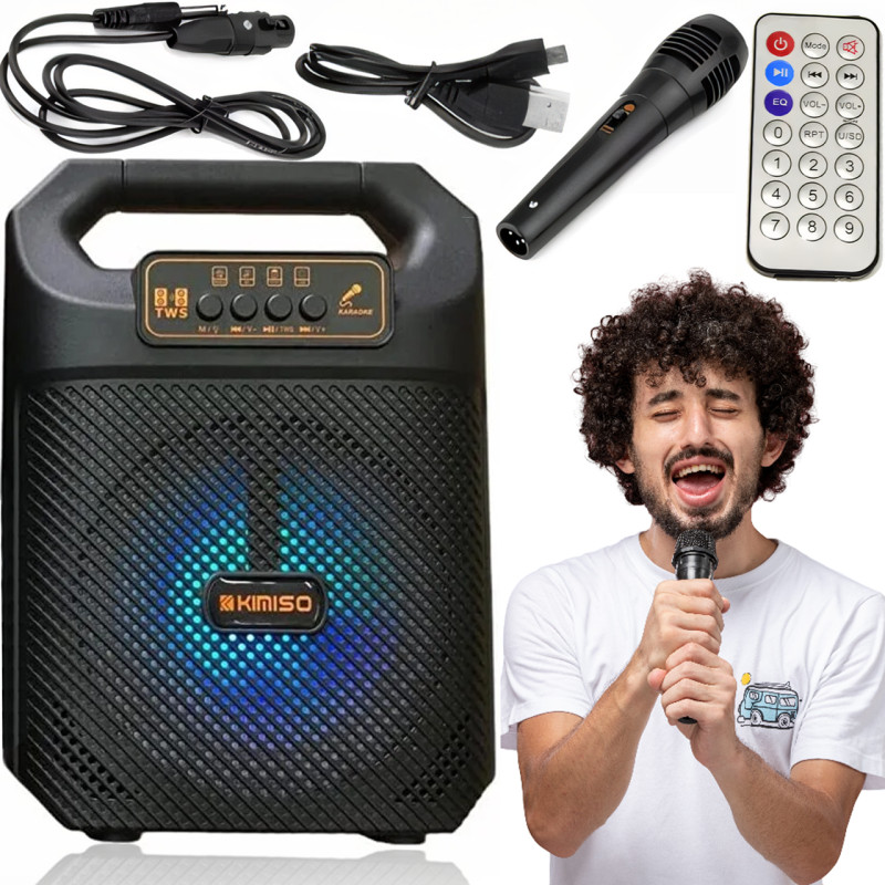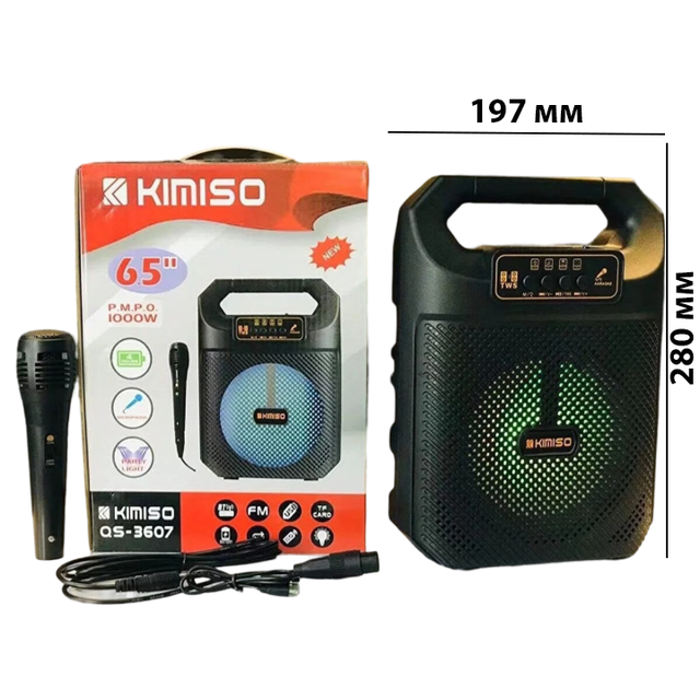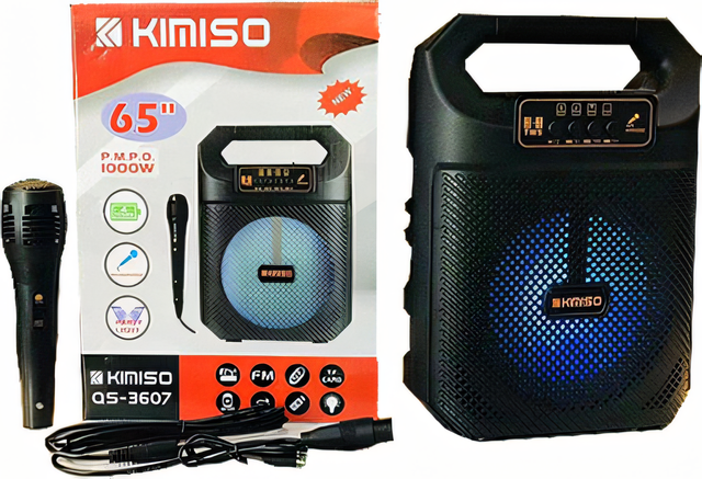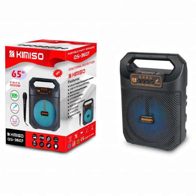 Портативная колонка Kimiso QS-3607 6.5inch - это компактное и многофункциональное аудиоустройство, предназначенное для различных ситуаций использования, от домашнего отдыха до мобильных мероприятий на открытом воздухе. Вот несколько особенностей и преимуществ этой колонки: