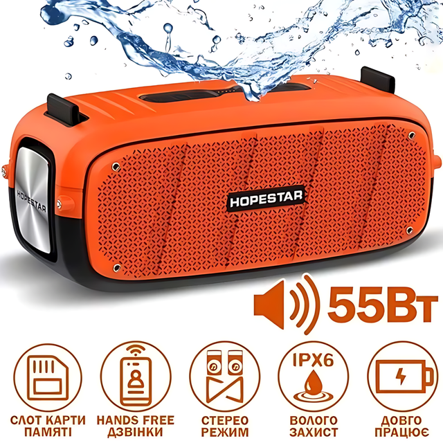 Портативная Bluetooth колонка Hopestar A20 PRO с микрофоном, Power Bank, влагозащитой IPX6, 55 Вт, аккумулятор 6000 мАч, TWS, USB/TF/AUX