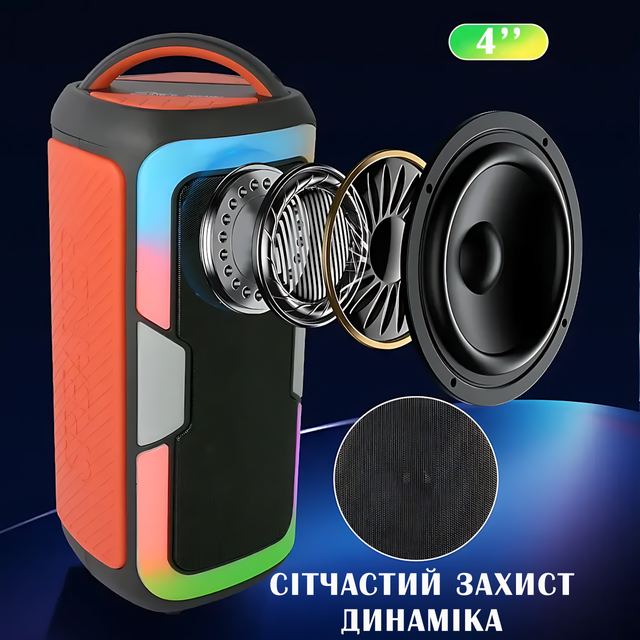Портативная Bluetooth колонка JQS4407 с микрофоном, пультом и RGB-подсветкой