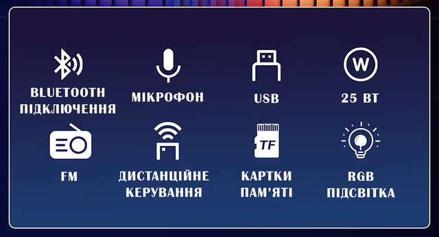 - Функционал для любых нужд: Микрофон для караоке раскроет ваши вокальные таланты, превратив любую встречу в зажигательную вечеринку. Дополнительные разъёмы — USB, TF-карта, AUX и Bluetooth V5.0 — обеспечивают максимально простое подключение к вашим устройствам: смартфону, планшету или ноутбуку. Поддержка FM-радио позволяет слушать любимые радиоволны, а благодаря карте памяти вы можете наслаждаться заранее загруженными треками;
