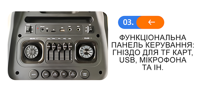 - Универсальность подключения: Поддержка Bluetooth, USB, TF-карт, радиоприёмника FM, и микрофона позволяет использовать колонку в любых сценариях;