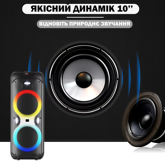 - Многофункциональность: Подходит для караоке, музыкальных выступлений, домашних вечеринок, фитнес-тренировок и уличных мероприятий;