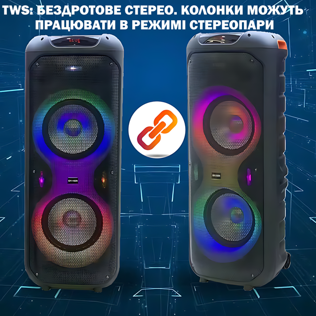 Портативная Bluetooth-колонка TTD-1002 – стерео звук 40 Вт, 2 микрофона, пульт д/у, USB/FM/AUX/TF-карты
