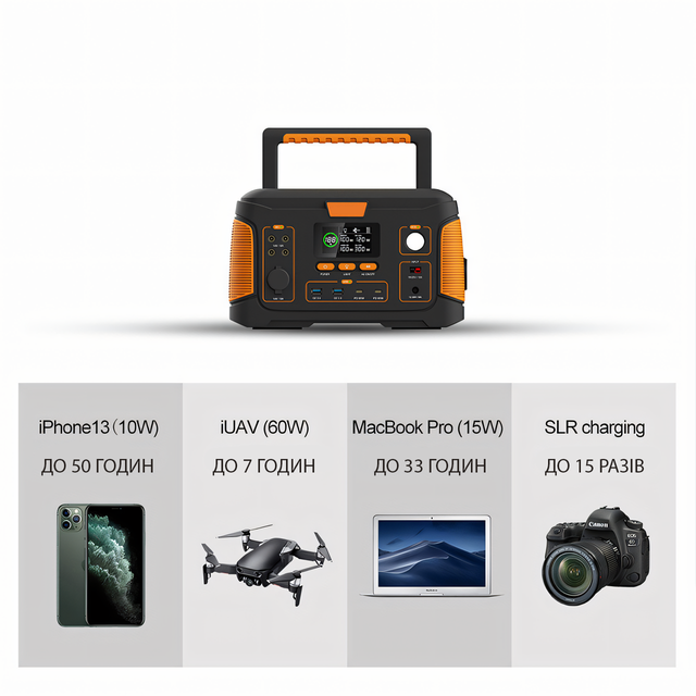 - Три подзарядки: Электростанцию можно заряжать с помощью адаптера постоянного тока, солнечной панели или автомобильного зарядного устройства, что обеспечивает гибкость в различных условиях;