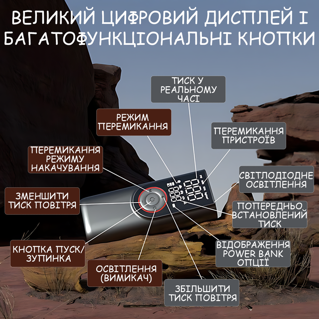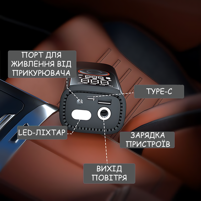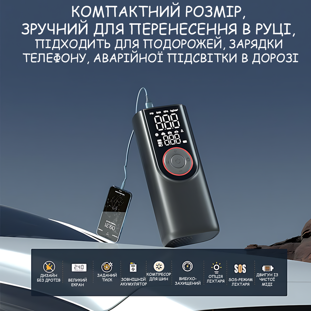 - ✅ Powerbank-режим: зарядка смартфона от компрессора