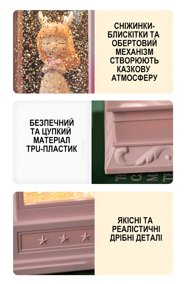 - Волшебная атмосфера: Мягкое свечение, эффект снежной метели и встроенные мелодии способствуют расслаблению и делают любую комнату уютной;