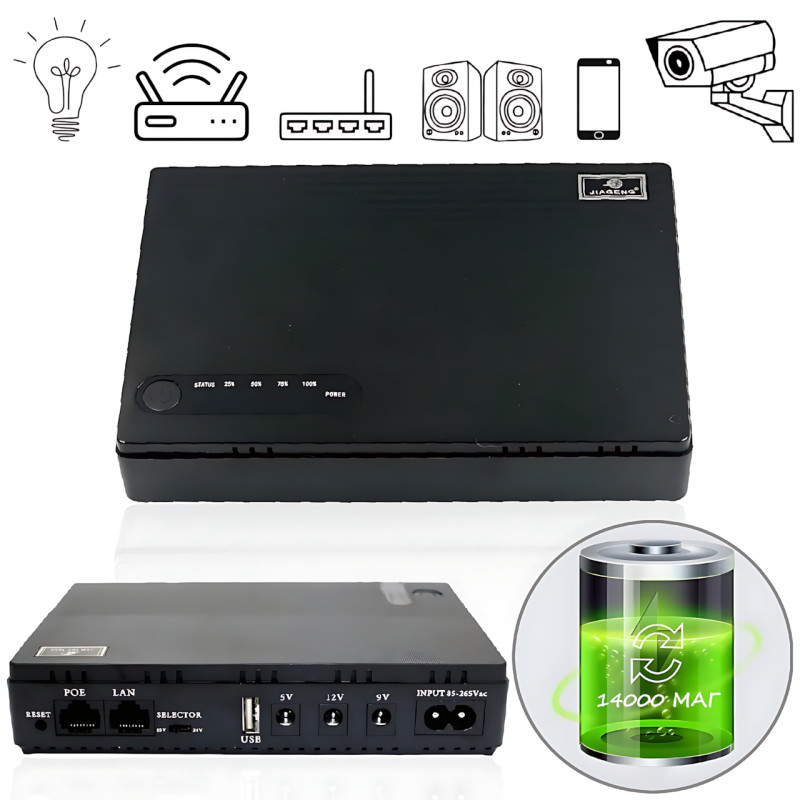 Портативный UPS Jiageng, бесперебойник для роутера 14000 mAh, power bank для видеонаблюдения 9V/12V для DC