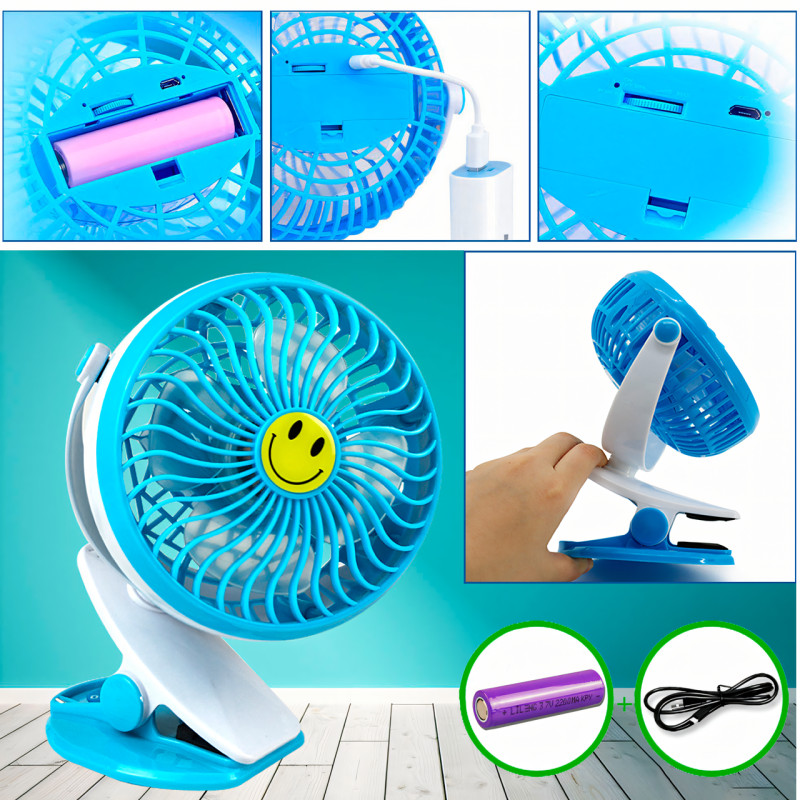 Портативный вентилятор GF-175, на прищепке, со съемным аккумулятором, USB-microUSB, 4 Вт, 90 мм, 3 скорости