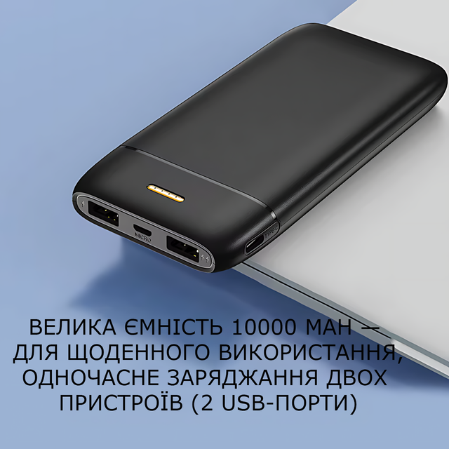 - Большая ёмкость 10000 mAh — оптимально для ежедневного использования