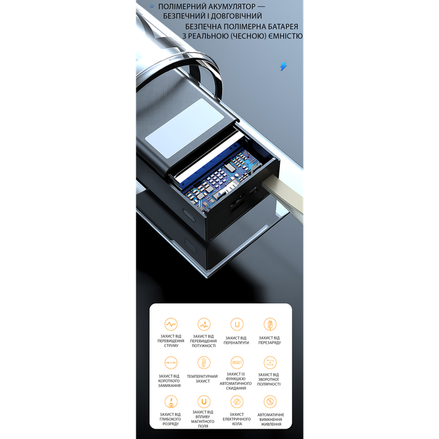 Модель оснащена информативным LED-дисплеем, который честно показывает уровень заряда — без гаданий по мигающим точкам. Поддержка быстрой зарядки до 22.5 Вт ускоряет процесс и экономит время, а возможность заряжать два устройства одновременно избавляет от очередей у кабеля.