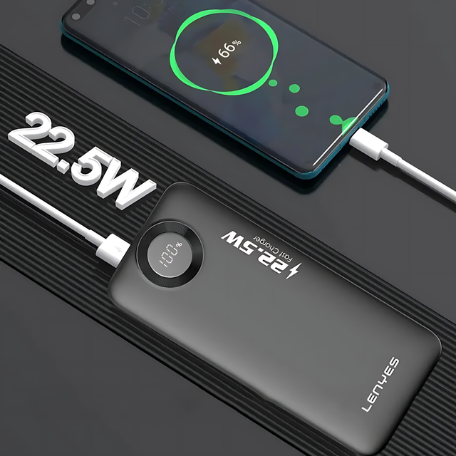 Power bank LENYES PX387D 30000mAh 22.5W с LED дисплеем — это отличный пауэрбанк, который всегда выручит! С его ёмкостью в 30,000mAh вы можете зарядить все свои устройства и не переживать, что батарея сядет в неподходящий момент. Быстрая зарядка на 22,5W даёт возможность зарядить гаджеты с максимальной скоростью. А LED дисплей покажет, сколько ещё энергии осталось.