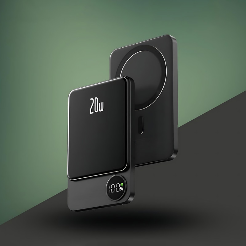 Power Bank Q9 MagSafe 5000 mAh 20W с беспроводной зарядкой Qi 15W, PD Type-C, дисплей, ультратонкий 12 мм, магнитный павербанк