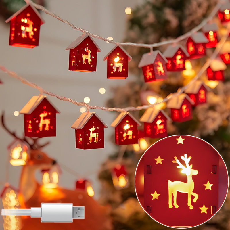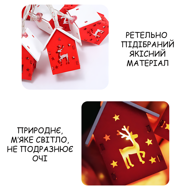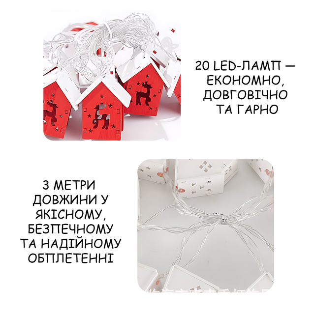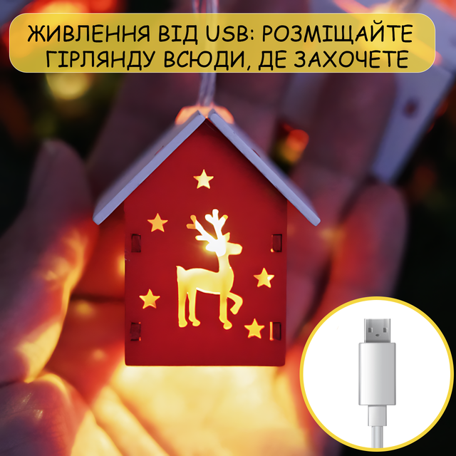 Новогодняя гирлянда «Домики» MA755, 3 м, 20 LED, тёплый белый свет, USB-питание / Декоративная гирлянда для интерьера, ёлки, фотозоны, кафе