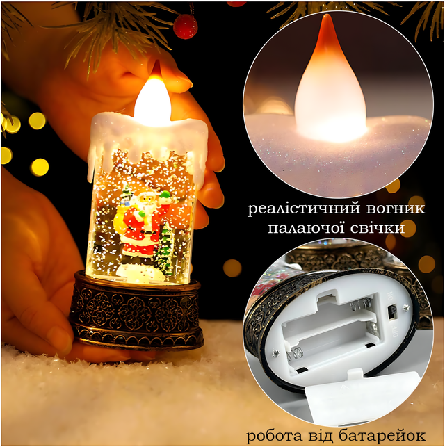 Праздничный музыкальный ночник-свеча AT-D10S 15.5×8 см, светильник с эффектом снежной метели, рождественский фонарь с подсветкой, работа от батареек AAA