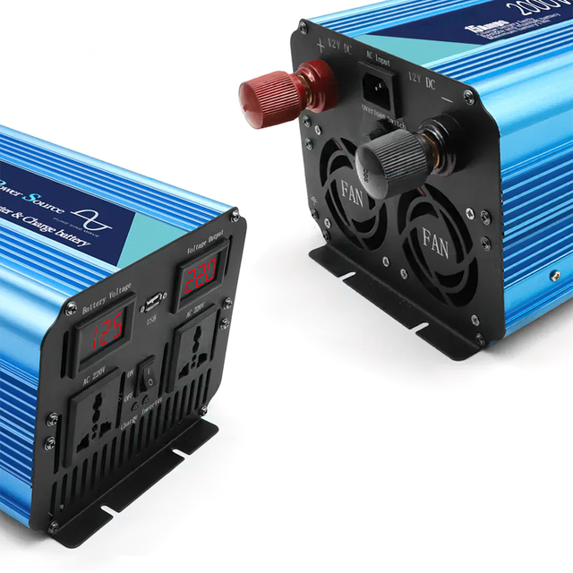 Корпус инвертора выполнен из алюминия, оборудован двумя вентиляторами для эффективного охлаждения. На передней панели устройства расположены кнопка включения/выключения, выход USB с напряжением 5 В, 2 розетки и 2 экрана для отображения напряжения батареи и выходного напряжения. Эта модель также характеризуется чистой синусоидальной формой напряжения на выходе, что делает ее идеальным выбором для устройств с чувствительной электроникой и микроконтроллерами. Электропитание в правильной синусоидальной форме способствует долгому сроку службы подключенных устройств.