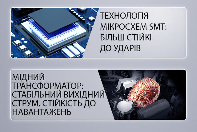 - Интегрированные функции: Встроенный вольтметр, выключатель и вентилятор охлаждения обеспечивают удобство и надежность эксплуатации;