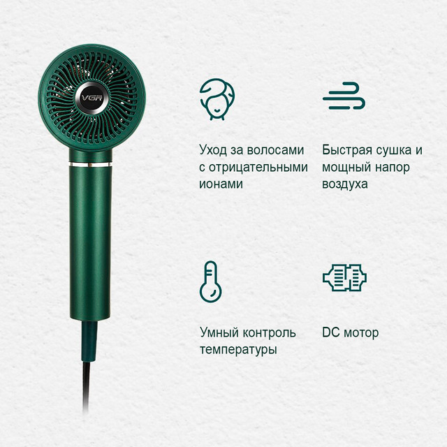 Профессиональный фен для волос VGR V-431 - стильное устройство, которое сделает Ваши волосы красивыми и ухоженными. Девайс имеет высокую мощность, что обеспечивает быструю и легкую укладку. Встроенная двойная защита от перегрева исключит нежеланные поломки.