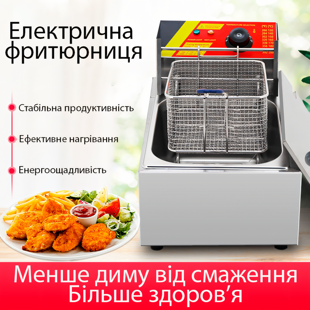 Профессиональная фритюрница ST-1006 с температурой до 200° и емкостью 6л., 2500 Вт, нержавеющая сталь
