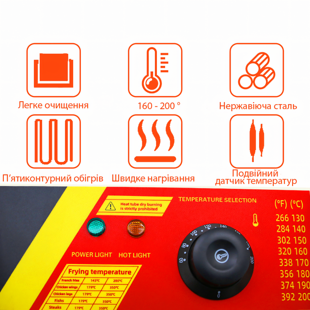 - Материал из нержавеющей стали: Обеспечивает прочность, долговечность и легкость в уходе. Кроме того, нержавеющая сталь сохраняет гигиеничность и эстетический вид фритюрницы на протяжении долгого времени.