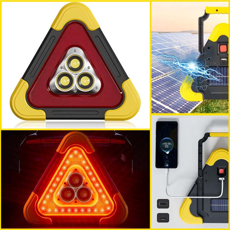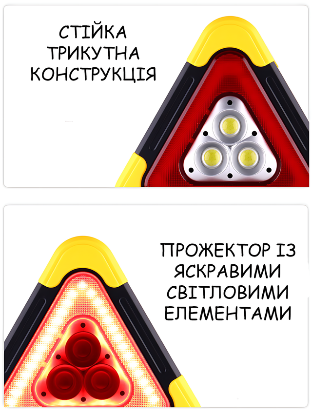 Треугольная форма как у дорожного знака + красный аварийный свет делают его настоящим спасателем для водителей. Поставил на дорогу — тебя видно. Включил красный режим — тебя уважают.