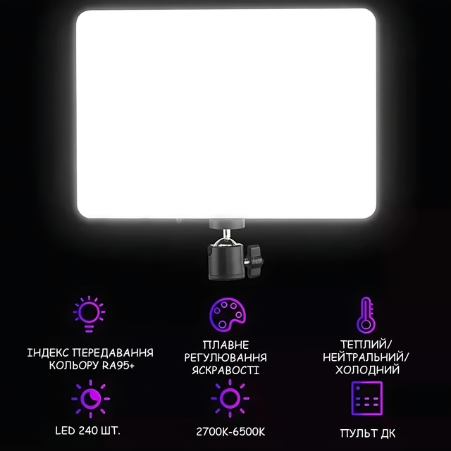 LED-лампа RL-26 — это компактный профессиональный прямоугольный видео-свет для фото- и видео-съёмки, предметной съёмки, макияжа/блогинга/работы с контентом.