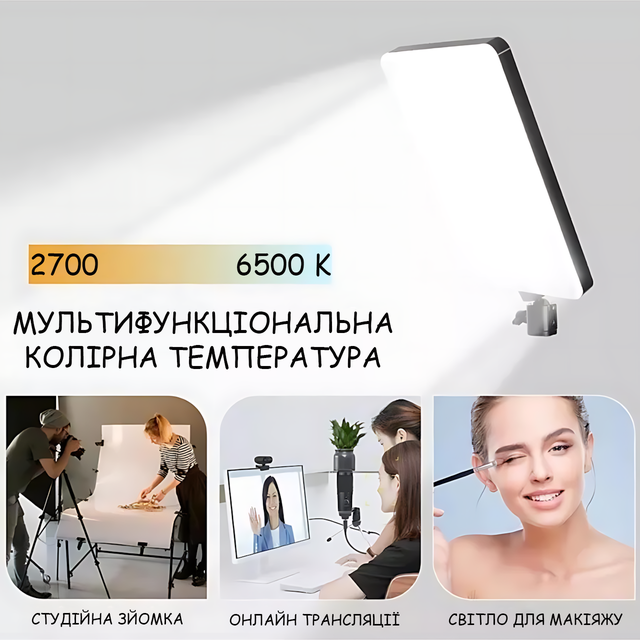 Прямоугольный LED видеосвет RL-26 (PL-26) 23×16 см, студийная лампа для фото и видео, Ra95+, 2700–6500K, 3 режима, диммер, USB 5V, держатель 3D, для блогеров и визажистов