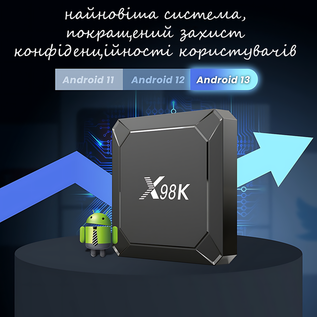 X98K Android 13 TV-Box (4/32 ГБ, 8K, Wi-Fi 6, Bluetooth 5.0) — кино, игры и интернет в одном устройстве!