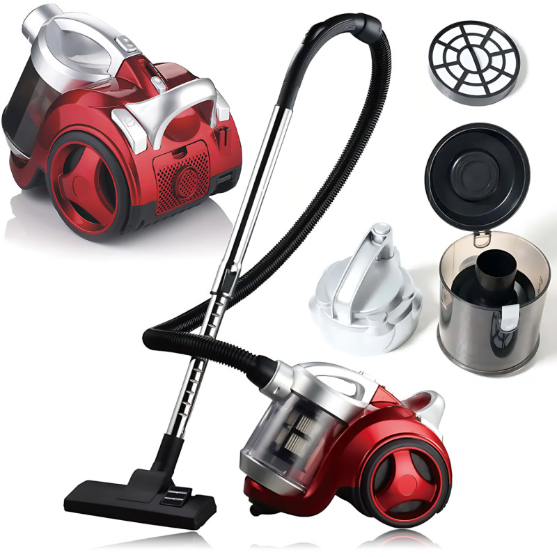 Пылесос без мешка Hoffmans HM-8801 – 1800 Вт, контейнер 3 л, HEPA-фильтр, 2 насадки, автосматывание шнура Красный