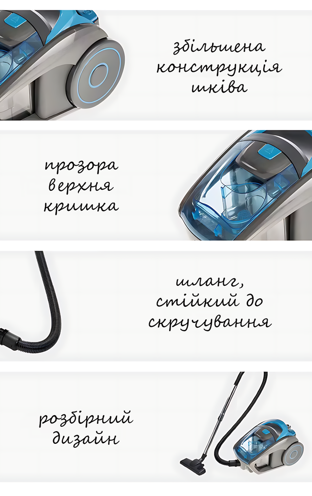 - ✅ Циклонная система — стабильная мощность даже при полном контейнере