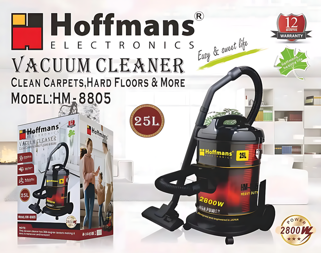Пылесос вакуумный Hoffmans HM-8805 25L 2800W — мощный и универсальный помощник для быстрой и эффективной уборки в вашем доме или офисе. Этот пылесос идеально справляется с любыми задачами по уборке благодаря высокой мощности и продуманным функциональным особенностям.