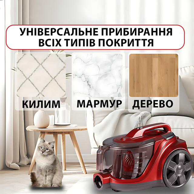 - ✅ Щелевая и комбинированная насадки – подходят для ковров, паркета и плитки.