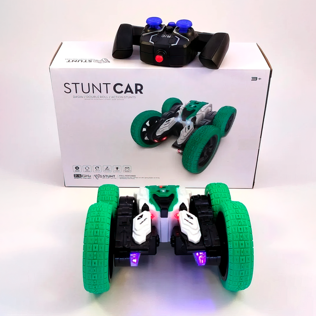 StuntCar - это радиоуправляемая трюковая машинка-перевертыш, которая станет отличным подарком для вашего ребенка. Игрушка умеет двигаться в четырех направлениях, делать поворот на 360 градусов и переворачиваться при перекидывании. Машинка вездеход отлично развивает мелкую моторику и восприятие физики окружающей среды. Радиоуправляемая модель позволяет придумать множество разных трюков и играть ей как дома, так и на улице. Пульт управления и машинка работают от аккумуляторных батареек, для пульта необходимы 2 батарейки типа АА (батарейки в комплектацию не входят). Время работы от одного заряда составляет до 30 минут.
