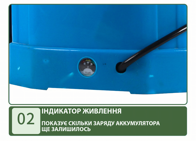 - Объем распыления после полной зарядки: 350L / полностью заряженный;