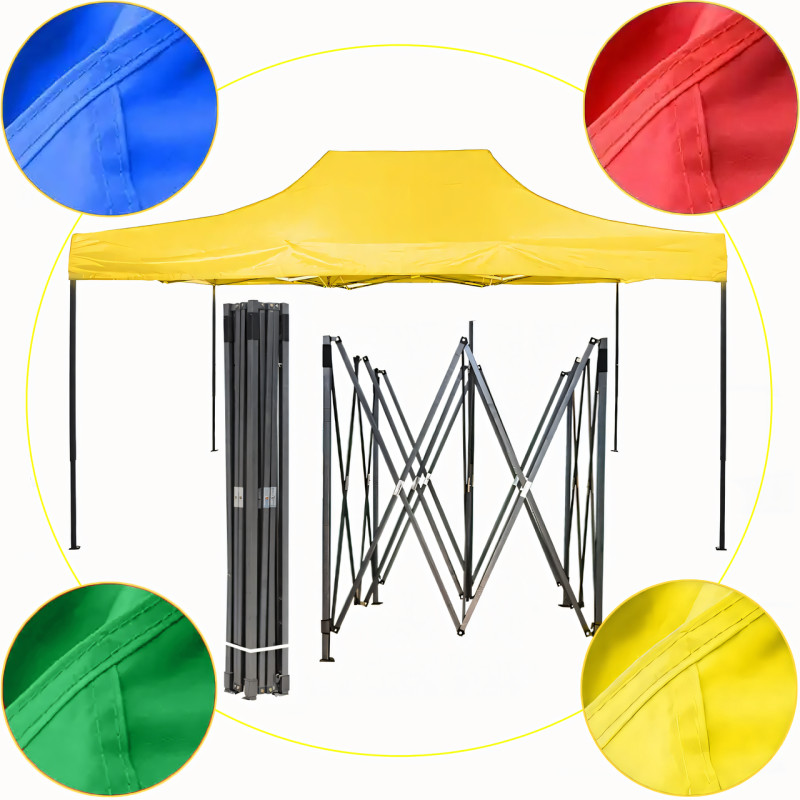 Этот шатер идеально подходит для различных мероприятий на свежем воздухе, обеспечивая надежную защиту от солнца и дождя. Доступен в четырех цветах: желтый, зеленый, синий и красный.