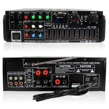 Усилитель звука AMP-326BT 300 Вт с Bluetooth, FM-радио, USB, SD, караоке, эквалайзером и пультом — м..