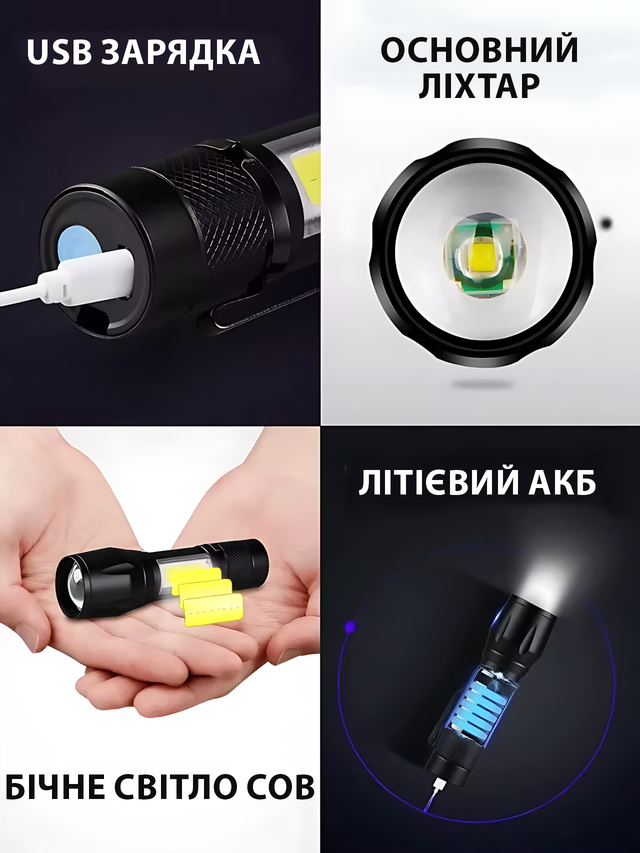 ???? Забудьте о батарейках! Фонарик оснащен встроенным аккумулятором, который легко заряжается через USB – просто подключите его к повербанку, ноутбуку или сети.