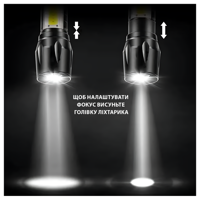 Компактный, мощный и удобный – этот универсальный фонарик станет вашим надежным спутником в путешествиях, на прогулках, в авто или дома! Яркий светодиод XPE и боковая COB-панель освещают большую площадь, а благодаря регулируемому фокусу можно настроить ширину и дальность луча.