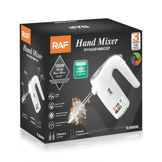 Ручной кухонный миксер RAF R.6680W с 2 сменными насадками, 5 скоростей, 150 Вт